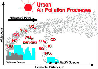 تولید ازن تروپوسفری از آلاینده های NOx : نور خورشید با شکستن مولکول های نیتروژن دی اکسید ، اتمهای O را پدید می آورند که آنها نیز به نوبه خود با حمله به مولکول های O2 موجود در محیط تروپوسفرمولکول های O3 را ایجاد می کنند . از طرفی مولکول نیتروژن مونو اکسید می تواند با ازن واکنش دهند تا دوباره NO2 تشکیل شده و این چرخه ادامه یابد…