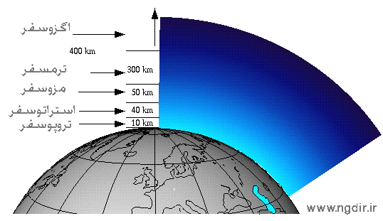 اتمسفر زمین را بر حسب چگونگی روند دما ،اختلاف چگالی ،تغییرات فشار ،تداخل گازها وبالاخره ویژگیهای الکتریکی به لایه های متفاوتی به شرح زیر تقسیم کرده اند: